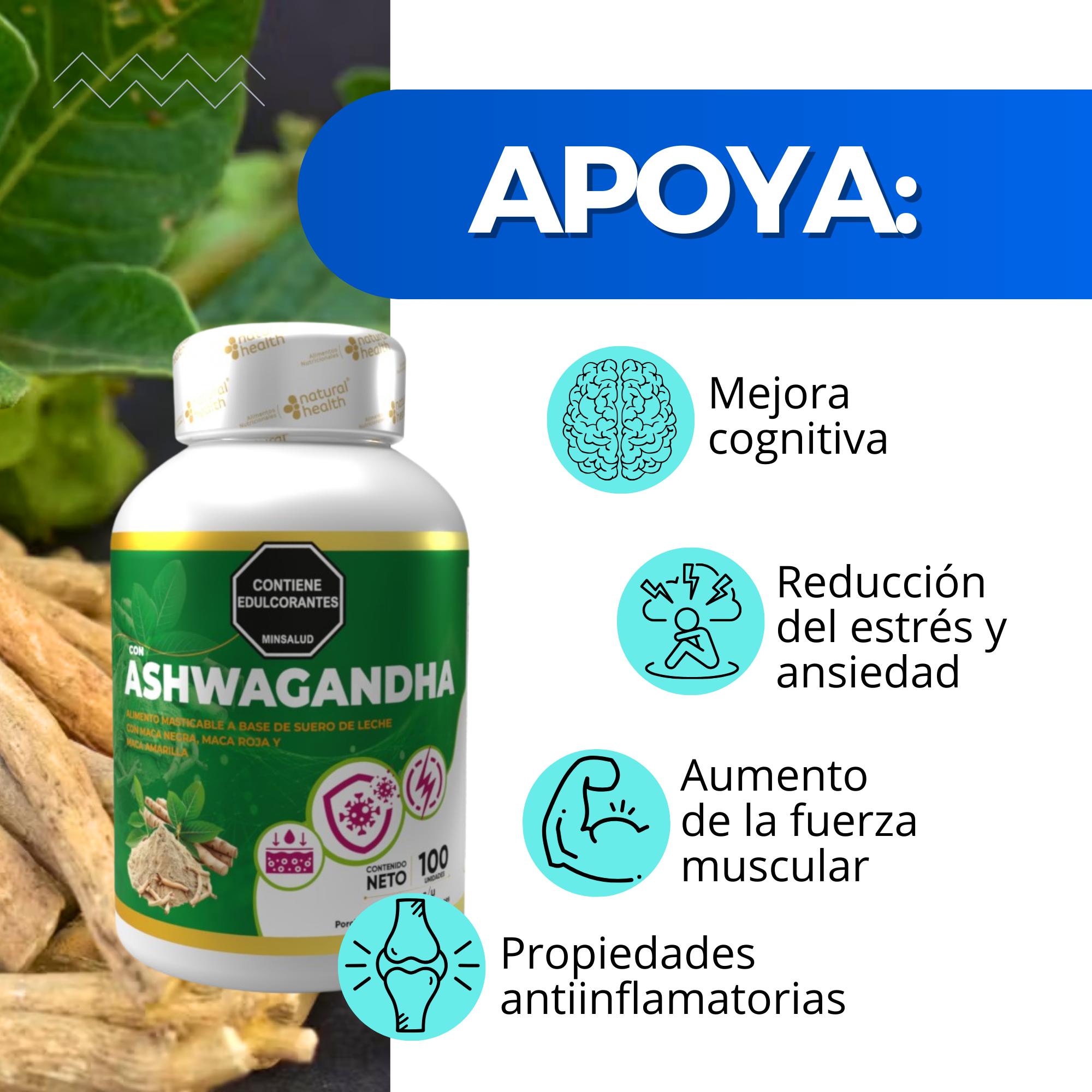 ¿Buscas un suplemento que realmente marque diferencia en tu día a día? Este Ashwagandha con Maca (negra, roja y amarilla) es el aliado perfecto para aumentar tu energía, mejorar tu rendimiento y equilibrar cuerpo y mente.