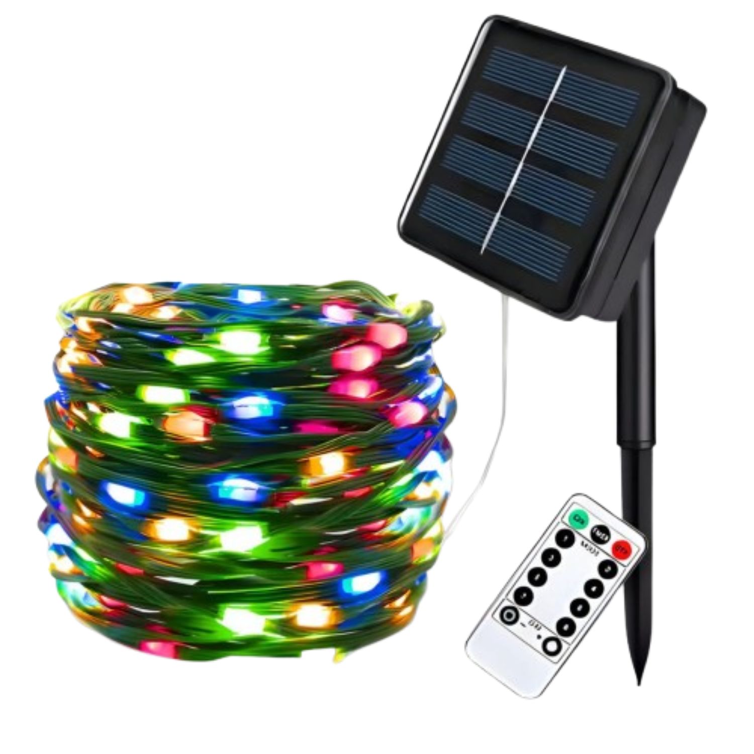 Muy fácil de instalar Seguramente disfrutará de la facilidad de colocar las luces de cadena, ya que el alambre de cuero altamente flexible se puede doblar fácilmente en cualquier forma que desee y envolver alrededor de árboles, vallas o cualquier otro objeto. Los paneles solares pueden montarse en la pared o enchufarse al césped para exponerse a la luz solar. Considerablemente todos los accesorios de montaje necesarios se incluyen en el paquete para uso instantáneo.