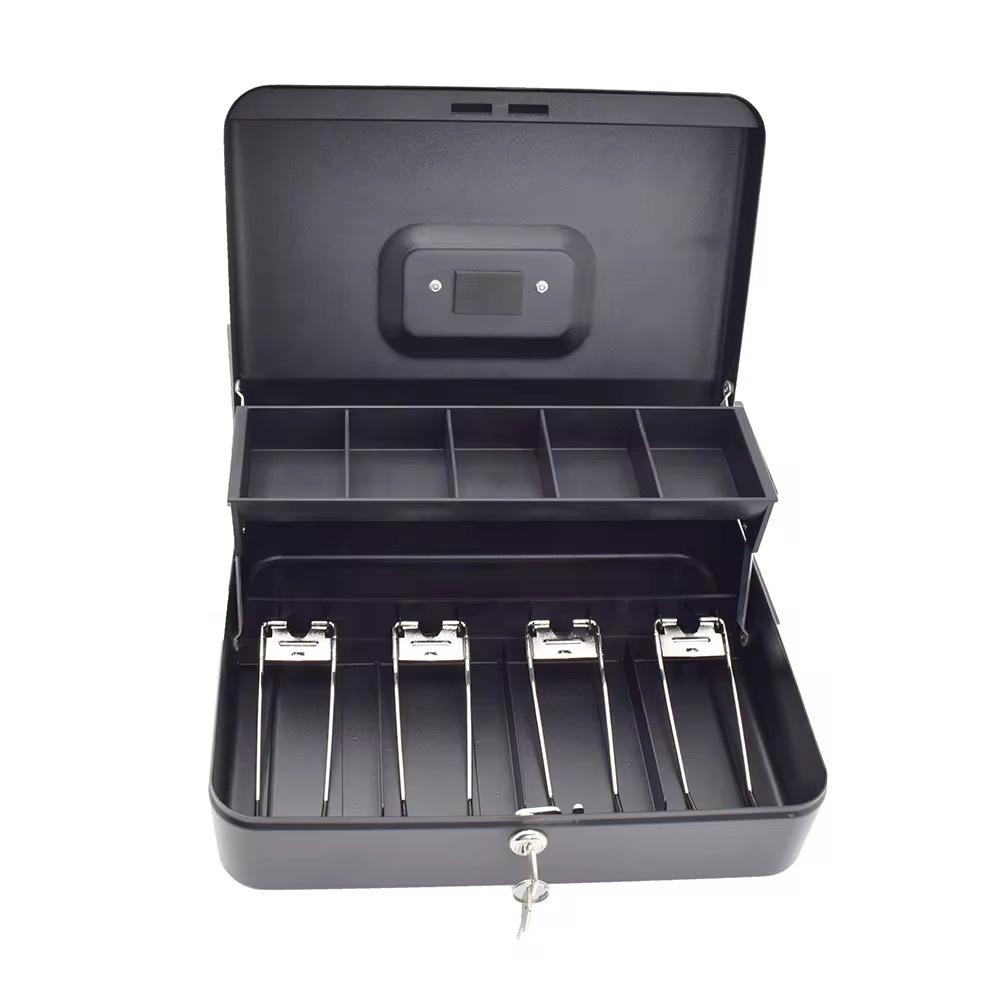 La imagen muestra una caja de efectivo o caja monedero portátil.