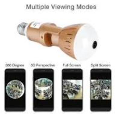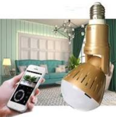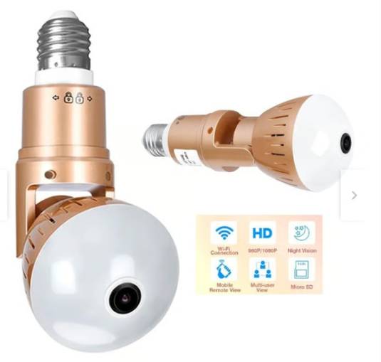 Cámara inteligente con diseño de bombillo, ideal para vigilar hogares, locales y oficinas sin llamar la atención. Se instala fácilmente en un portalámparas estándar y ofrece monitoreo 360° en tiempo real desde el celular.