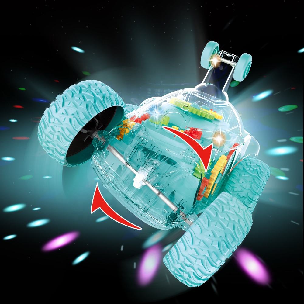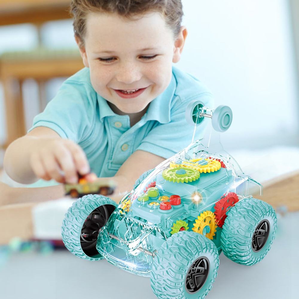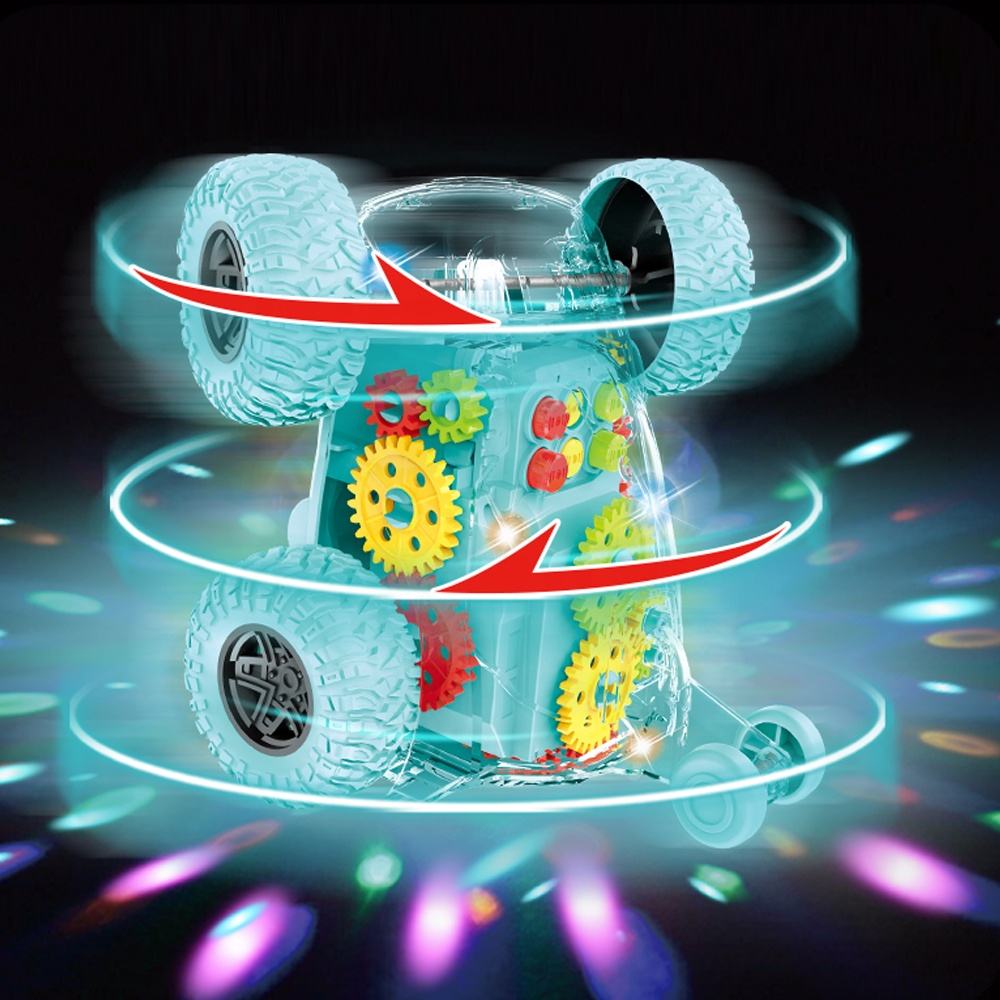 Carro juguete tipo stunt/off-road con diseño transparente, pensado para llamar la atención por su interior mecánico visible. Es un vehículo divertido y didáctico a la vez, porque permite ver cómo se mueven los engranajes mientras avanza. Ideal para niños que aman los carros, la velocidad y los juguetes diferentes.