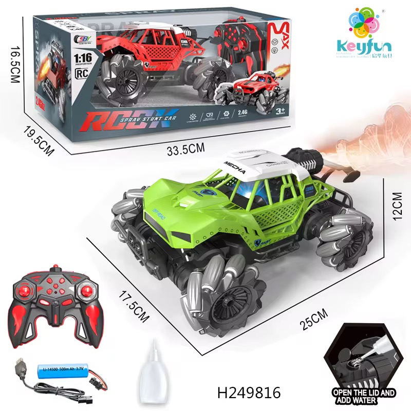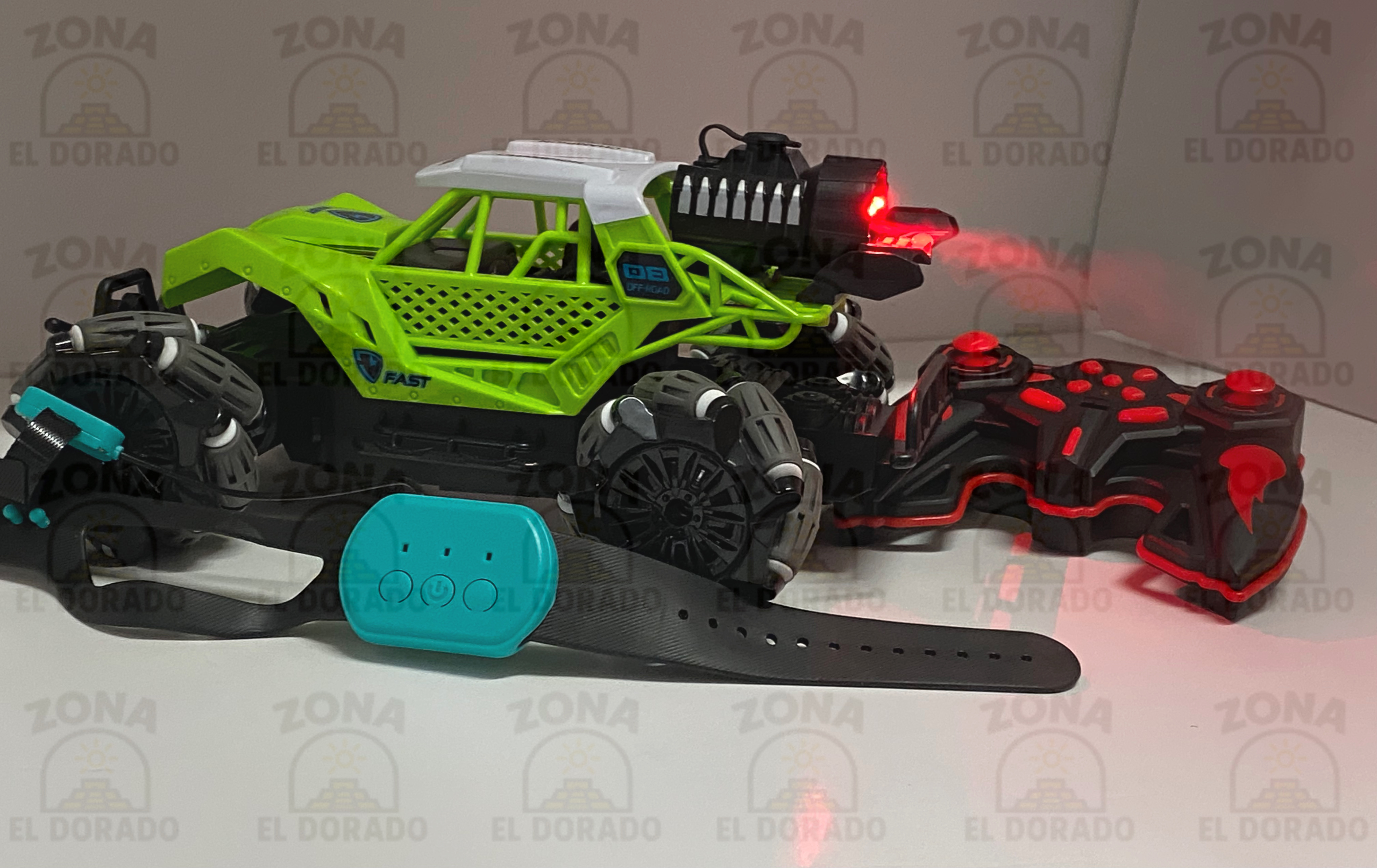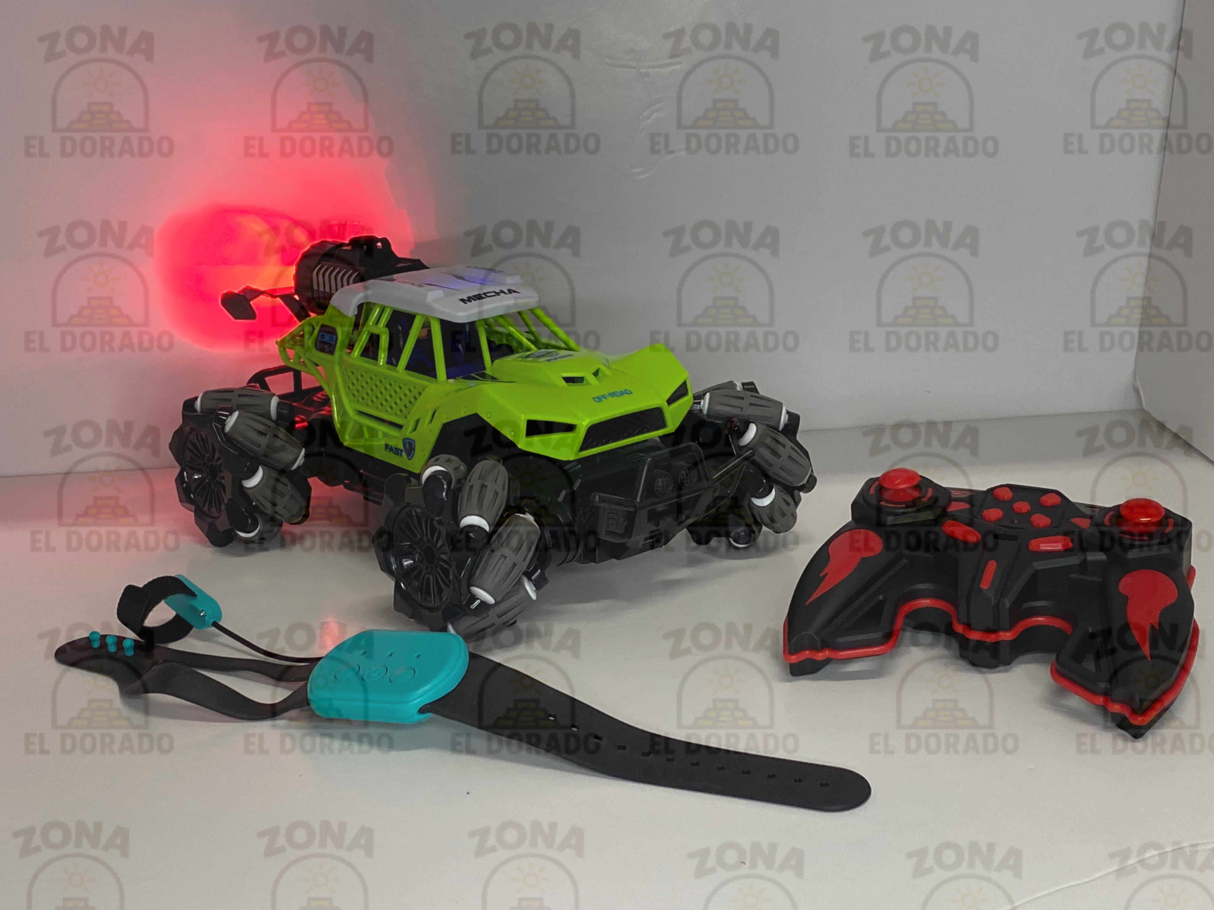 ¡Diversión extrema garantizada! Este carro radiocontrol tipo stunt está diseñado para maniobras increíbles, derrapes 360° y conducción en cualquier dirección gracias a sus ruedas Mecanum. Además, incluye efecto de humo realista, solo agrega un poco de agua en el depósito y listo.