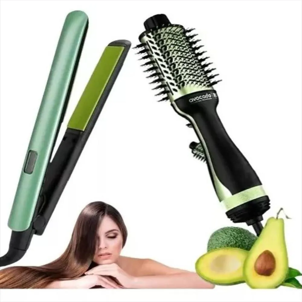 Kit Cepillo Secador Plancha Aguacate Combo Profesional 2en1