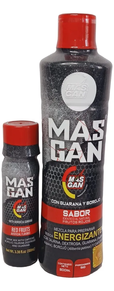 Entiendo, Masgan es una bebida energizante que combina guaraná y borojó con un sabor a frutos rojos. Está diseñada para proporcionar un impulso de energía y también se describe como afrodisíaca para ambos géneros. El guaraná es conocido por ser una fuente natural de cafeína y se ha utilizado tradicionalmente para aumentar la energía y mejorar el rendimiento físico y mental. En conjunto, estos ingredientes pueden proporcionar un impulso de energía y mejorar el estado de ánimo y potencia sexual.