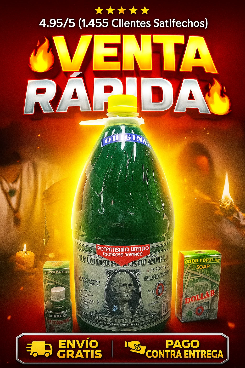 • Baño de Dólar 1800 ml: limpia, desbloquea y abre caminos económicos. Ideal para atraer ventas, clientes y movimiento constante.