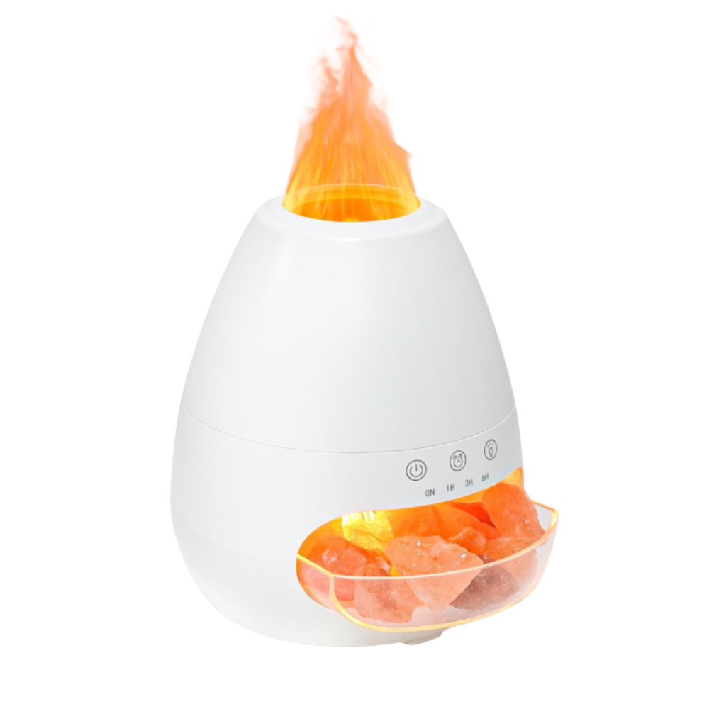 Es muy popular como elemento decorativo, relajante y para aromaterapia, especialmente en dormitorios o salas de estar, porque combina humidificación, difusión de aromas, luz cálida de las piedras de sal y el hipnótico efecto de “fuego” falso sin riesgos.