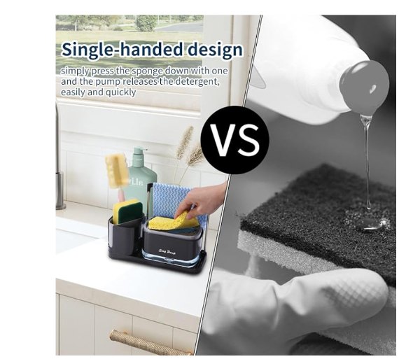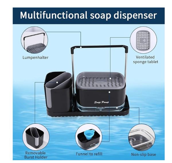 Duradero y seguro: soporte de esponja para dispensador de jabón hecho de material ABS y policarbonato de alta calidad, no se corroe ni se oxida fácilmente, es seguro, protege el medio ambiente y la salud.