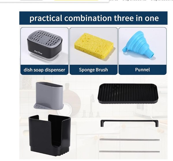 Fácil de usar: nuestro organizador de fregadero está diseñado para facilitar la dispensación de jabón. El práctico funcionamiento del drenaje de agua permite un lavado más rápido de los platos, ahorra tiempo de lavado y ahorra espacio en la estufa.