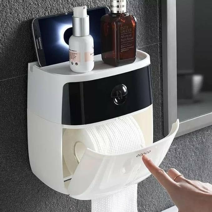 Dispensador de papel, con adhesivos para pegar a la pared.
