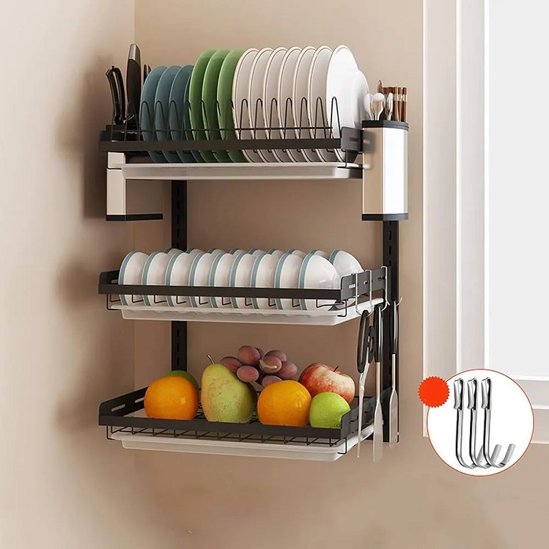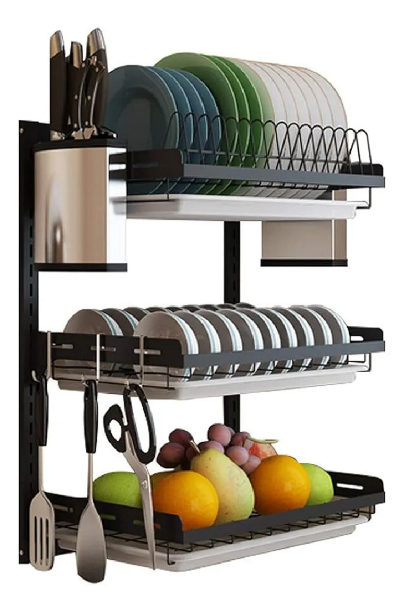 Optimiza el espacio en tu cocina con el escurridor de platos de pared n estante de drenaje de 3 capas de acero inoxidable deal para mantener tus utensilios organizados y secos.
