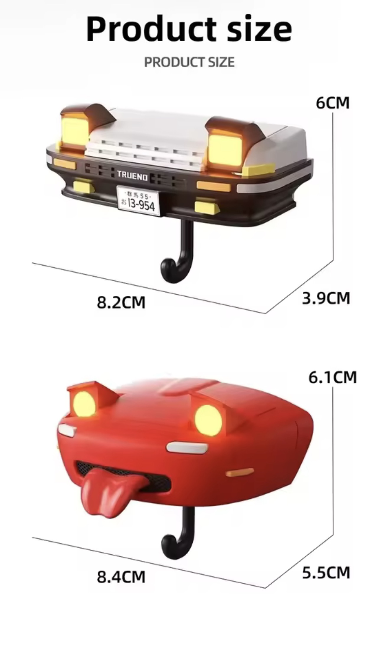 Añade estilo, funcionalidad y un toque de magia automotriz a tu espacio con este gancho para llaves con diseño doble de frentes de carro 🚗✨. El accesorio presenta dos modelos icónicos: el legendario Toyota AE86 ⚪⚫ y el divertido Mazda Miata 🔴, ambos cuidadosamente representados con un acabado detallado que encantará a cualquier amante de los autos.