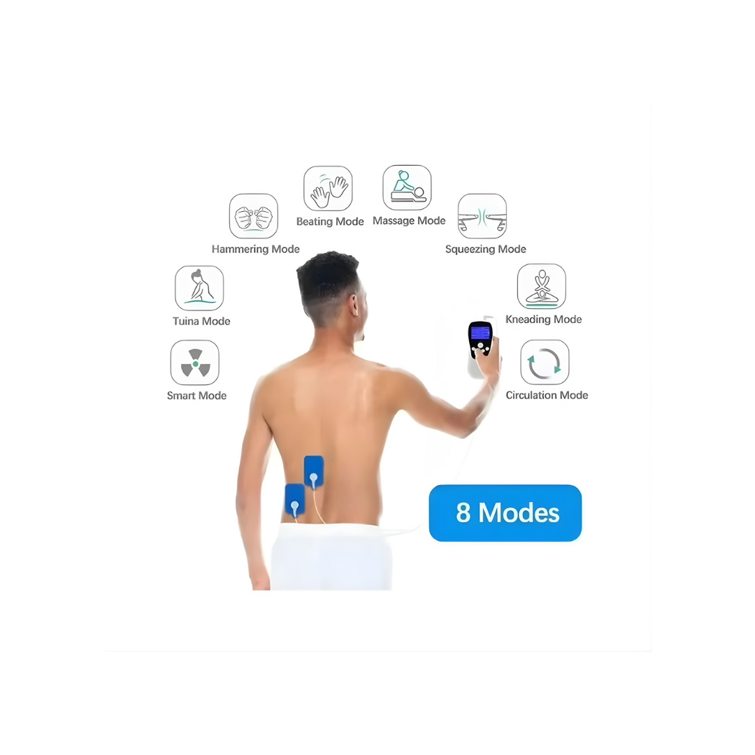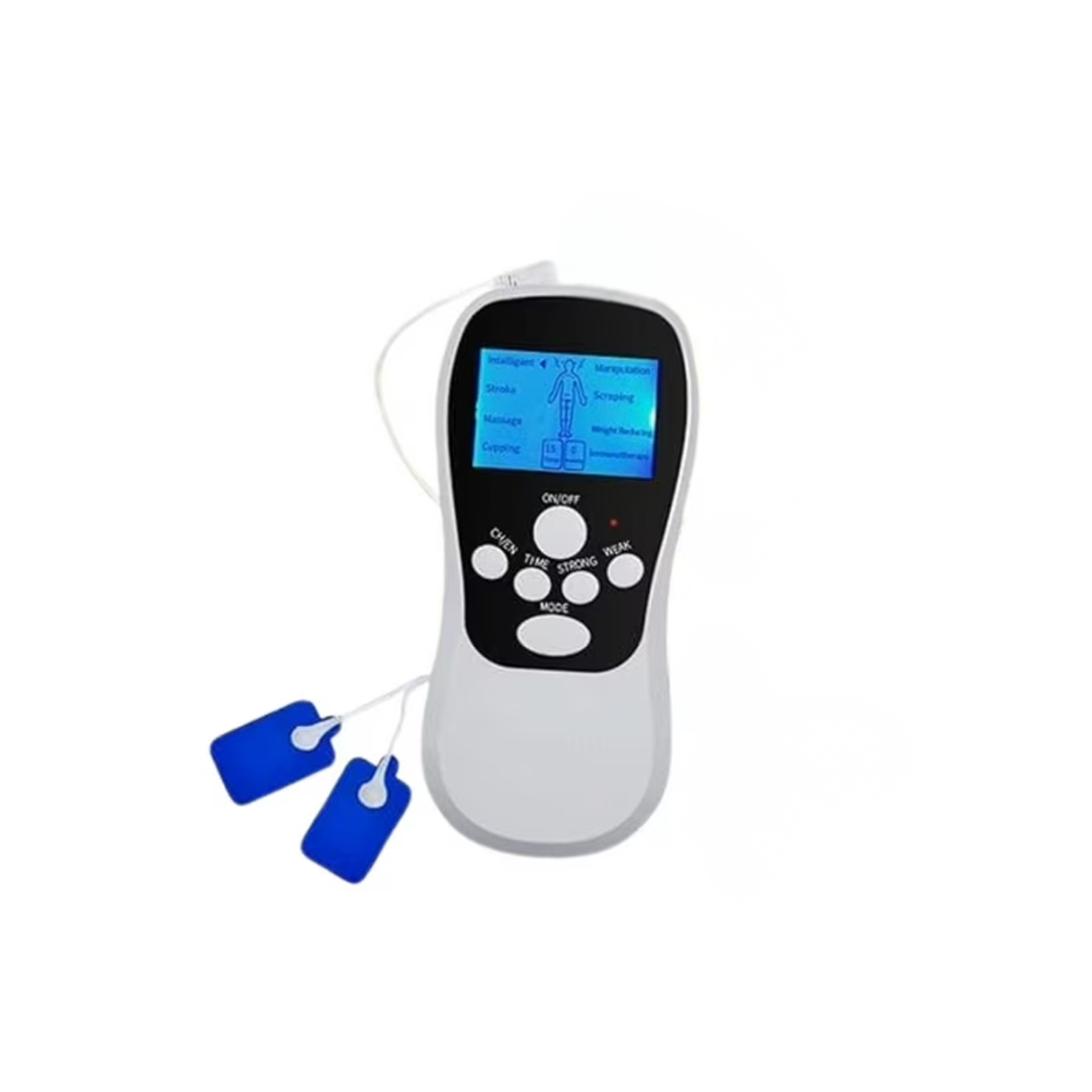 El dispositivo es portátil y funciona mediante alimentación interna, por lo que puede utilizarse en el hogar o en desplazamientos. Sus electrodos se conectan mediante cables incluidos y se adhieren fácilmente a la piel para una aplicación directa.