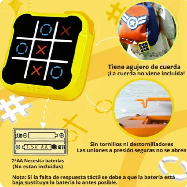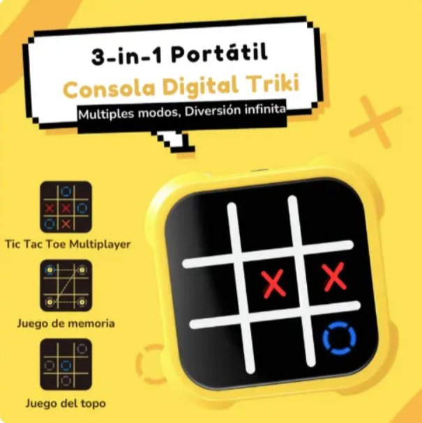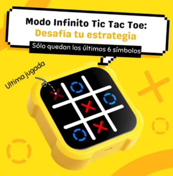 El Triqui Electrónico Tic Tac reinventa el clásico juego del “tres en línea” con una consola digital interactiva que hace cada partida más dinámica y entretenida. Su pantalla táctil facilita el juego entre dos jugadores, promoviendo la agilidad mental, el pensamiento estratégico y la sana competencia. Compacto, portátil y fácil de usar, es ideal para llevar a cualquier reunión, viaje o momento de ocio. Apto para todas las edades, este moderno triqui convierte un juego tradicional en una experiencia digital divertida para compartir en familia o con amigos. ¡Horas de entretenimiento garantizadas en cada partida!
