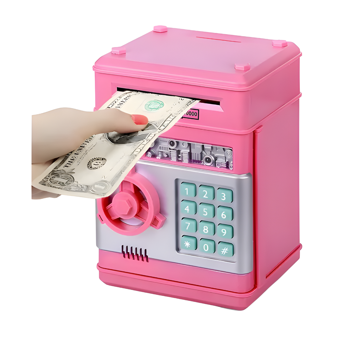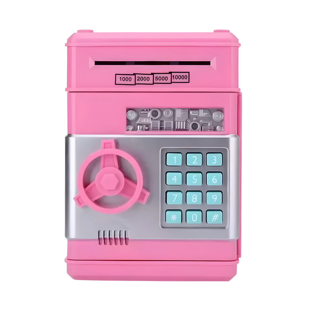 Esta caja fuerte tipo juguete ofrece una experiencia interactiva para motivar el ahorro temprano mediante funciones digitales accesibles para los pequeños. Su estructura simula un sistema seguro al permitir ingresar monedas y billetes por ranuras separadas, lo que facilita organizar recursos personales durante el juego diario. La apertura por código aporta un componente de reto sencillo que promueve autonomía.