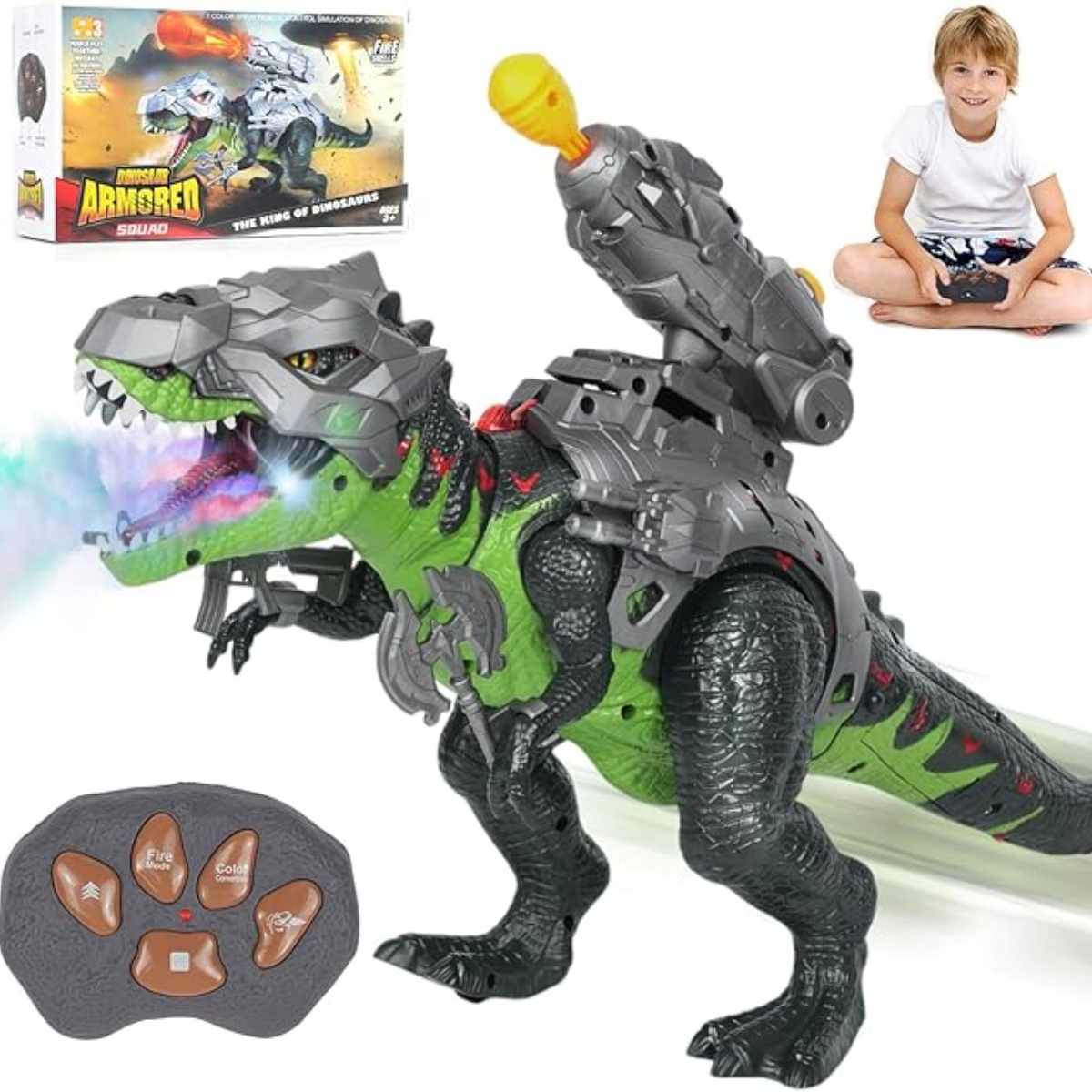 • Deslumbrante efecto de niebla pulverizante: este dinosaurio RC está equipado con un nebulizador altamente eficiente y luces LED que cambian de 7 colores, que pueden crear efectos geniales como llamas, heladas y más. Simplemente llénalo con agua desde la parte superior y el dinosaurio rocía una fina y uniforme niebla de agua para un efecto de luz y sombra realista e impresionante que ofrece una visión realista