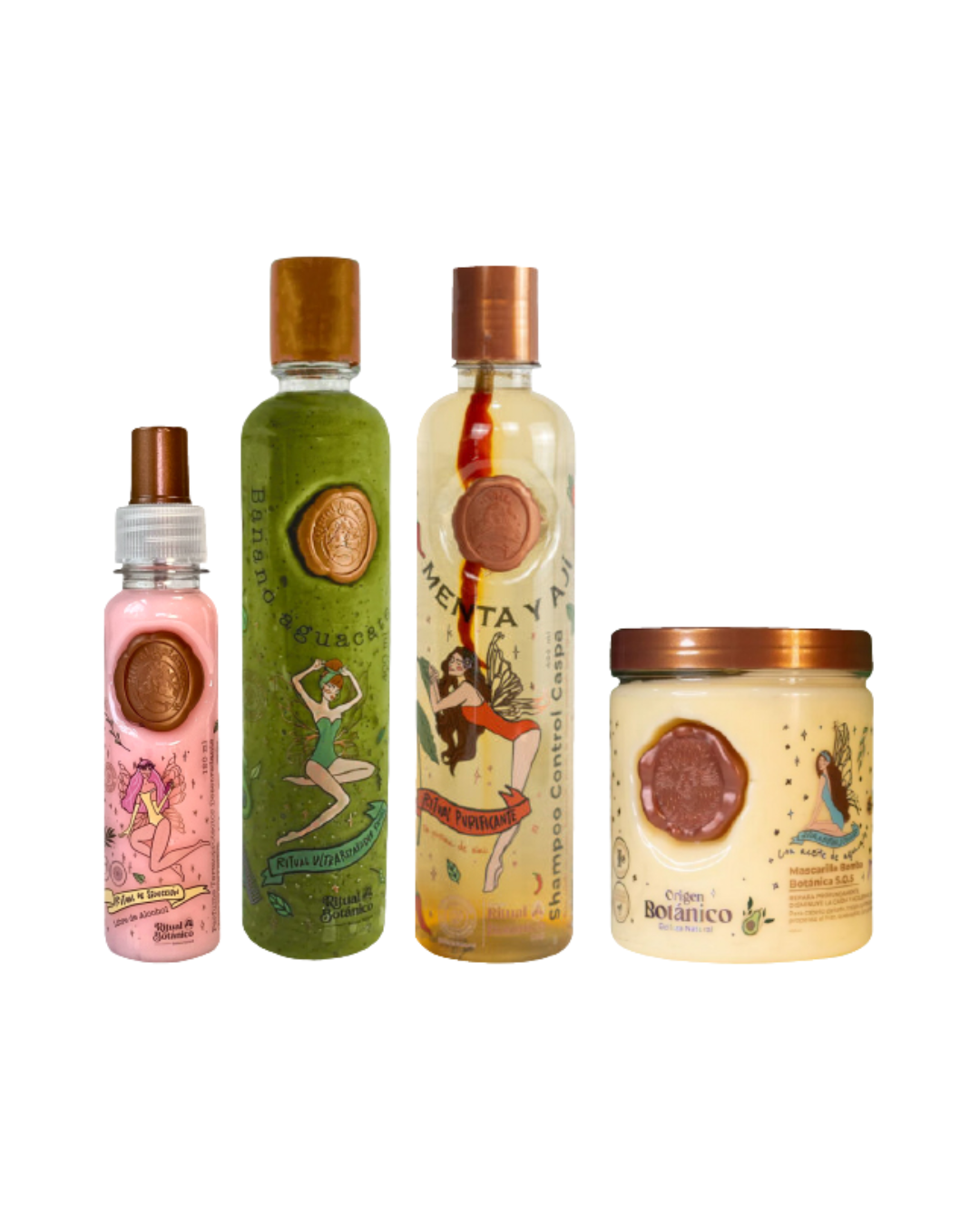 Formulado con ingredientes 100% botánicos como menta, ají, banano, aguacate, aceites naturales y extractos herbales, este kit ofrece una solución integral para limpiar profundamente, controlar la caspa, nutrir, desenredar y restaurar la hebra capilar.