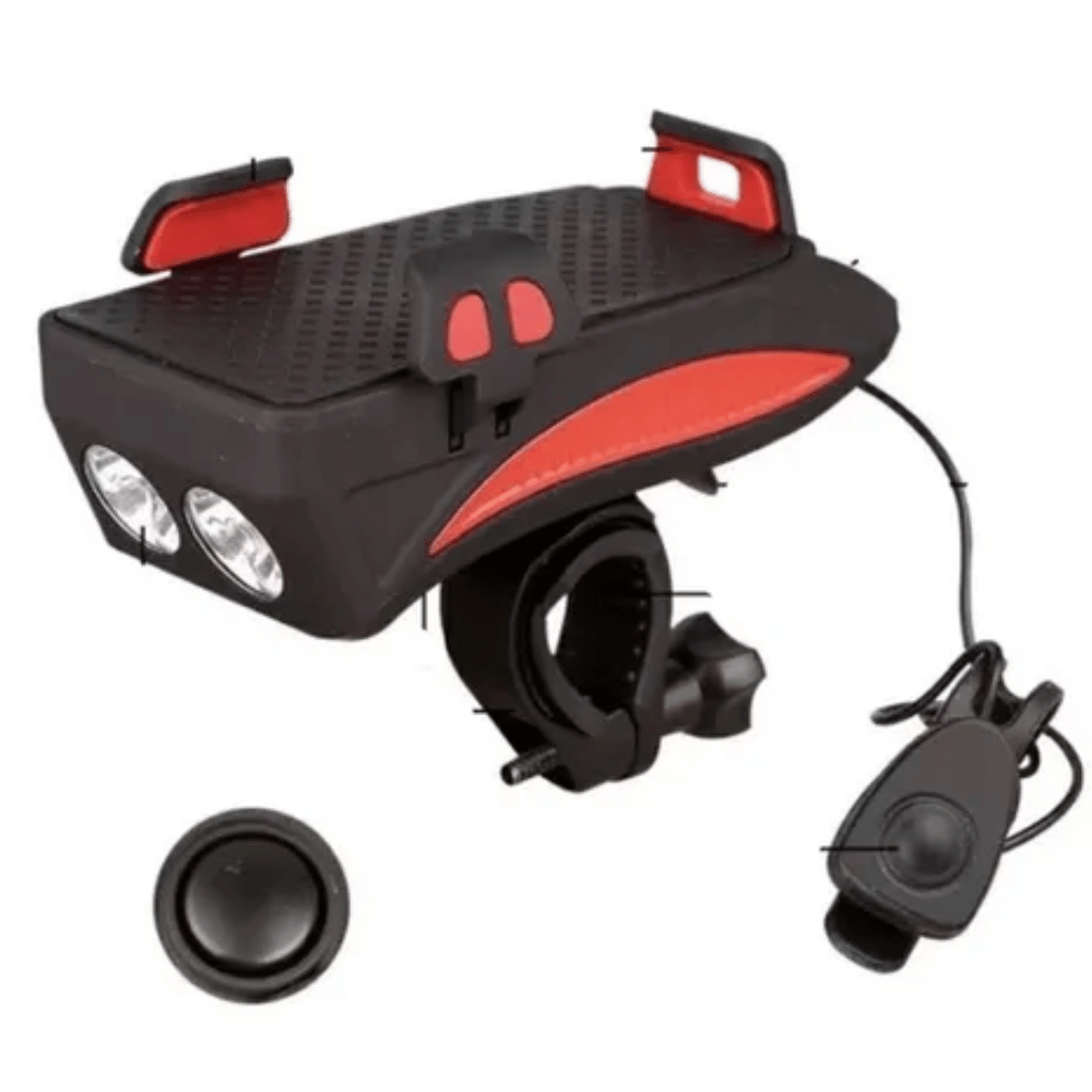 Esta lámpara para bicicleta X3 proporciona una iluminación potente y amplia diseñada para mejorar la seguridad en recorridos nocturnos. Cuenta con tres focos frontales que incrementan la intensidad lumínica, ofreciendo una visión clara del camino incluso en zonas oscuras.