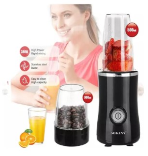 La Licuadora SOKANY Multifuncional 2 en 1 es la herramienta perfecta para tu cocina. Con una potencia de 380W, es adecuada para moler, mezclar, licuar y hacer batidos de manera rápida y eficiente. Incluye dos vasos, uno de 300ml y otro de 500ml, brindándote la flexibilidad de preparar distintas cantidades según tus necesidades. Equipada con un interruptor de encendido/apagado y protección contra sobrecalentamiento, garantiza un uso seguro y prolongado.