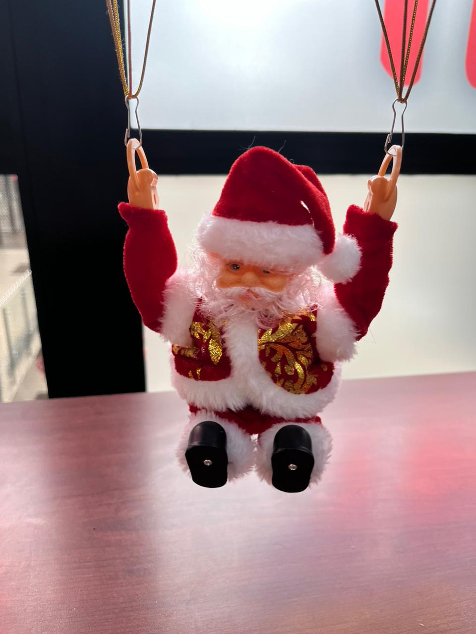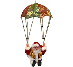 Diseño tridimensional de Papá Noel con paracaídas.