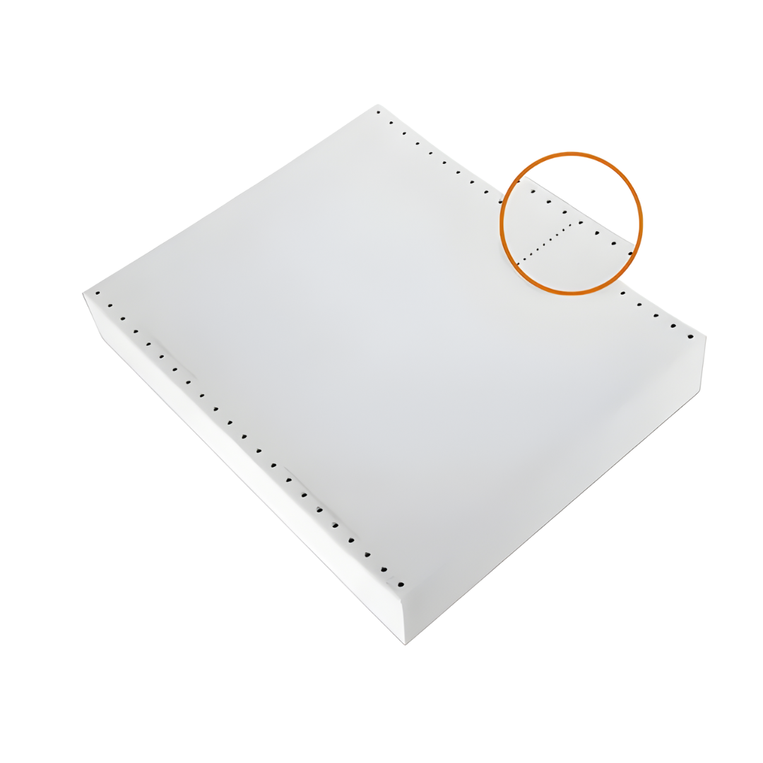 El troquel facilita la separación ordenada de formularios, manteniendo bordes definidos tras el desgarre. Funciona de manera estable bajo impresoras matriciales de alto uso.