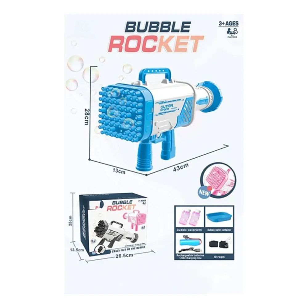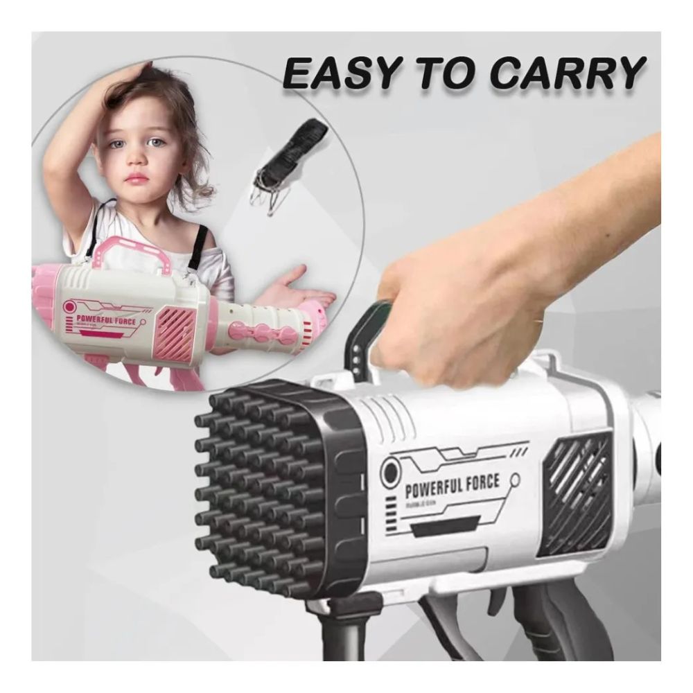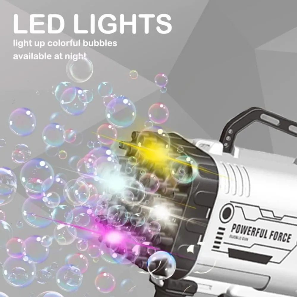 Potente ventilador: el ventilador integrado de superpotencia trae miles de burbujas coloridas para soplar desde la salida de la pistola de burbujas de bazuca. Cuando te sientas cansado después de perseguir, la máquina de burbujas de bazuca se puede utilizar como un pequeño ventilador.