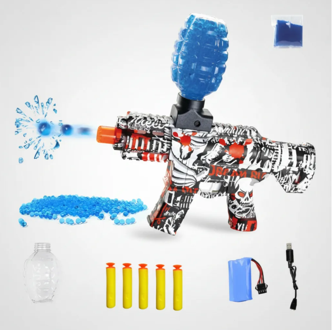 ¡Diversión asegurada al aire libre! Este Lanzador de Bolas de Gel 2 en 1 combina acción, color y seguridad para que niños y niñas disfruten de horas de juego. Su diseño tipo graffiti 🎨 le da un estilo único y moderno, ideal para aventuras en el jardín o el parque.