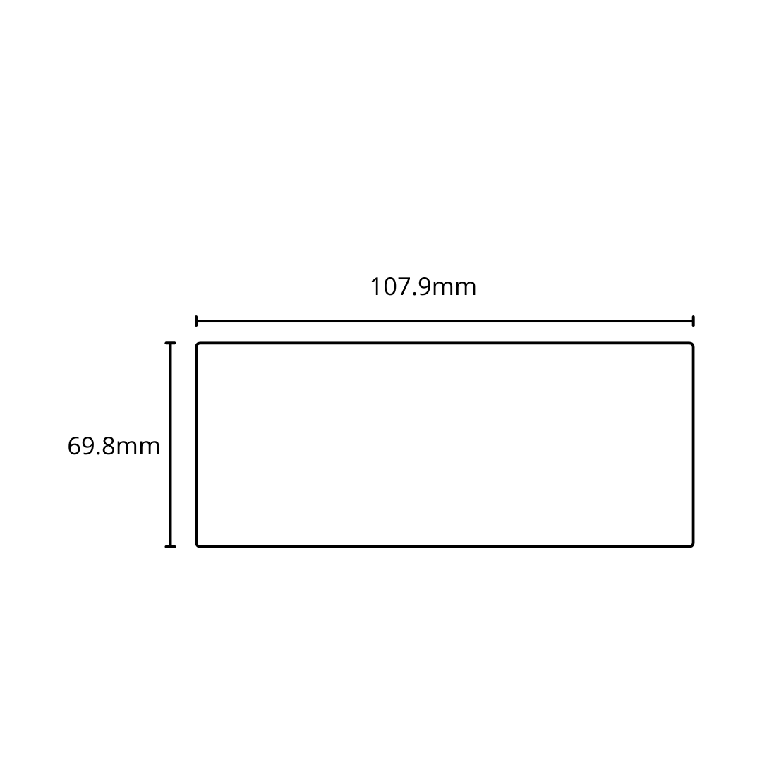 Este rótulo rectangular amplio brinda una zona extensa que favorece la impresión de información detallada. Su estructura facilita la manipulación en procesos repetitivos, ofreciendo un soporte uniforme en sistemas láser.