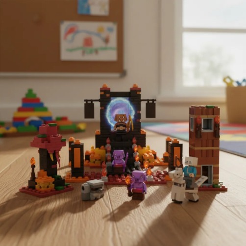 Este set de bloques tipo construcción permite recrear una épica aventura con personajes, criaturas y estructuras inspiradas en mundos de fantasía. Incluye portal mágico, torre, árbol encantado y figuras articuladas para que los niños construyan, jueguen y creen sus propias historias.