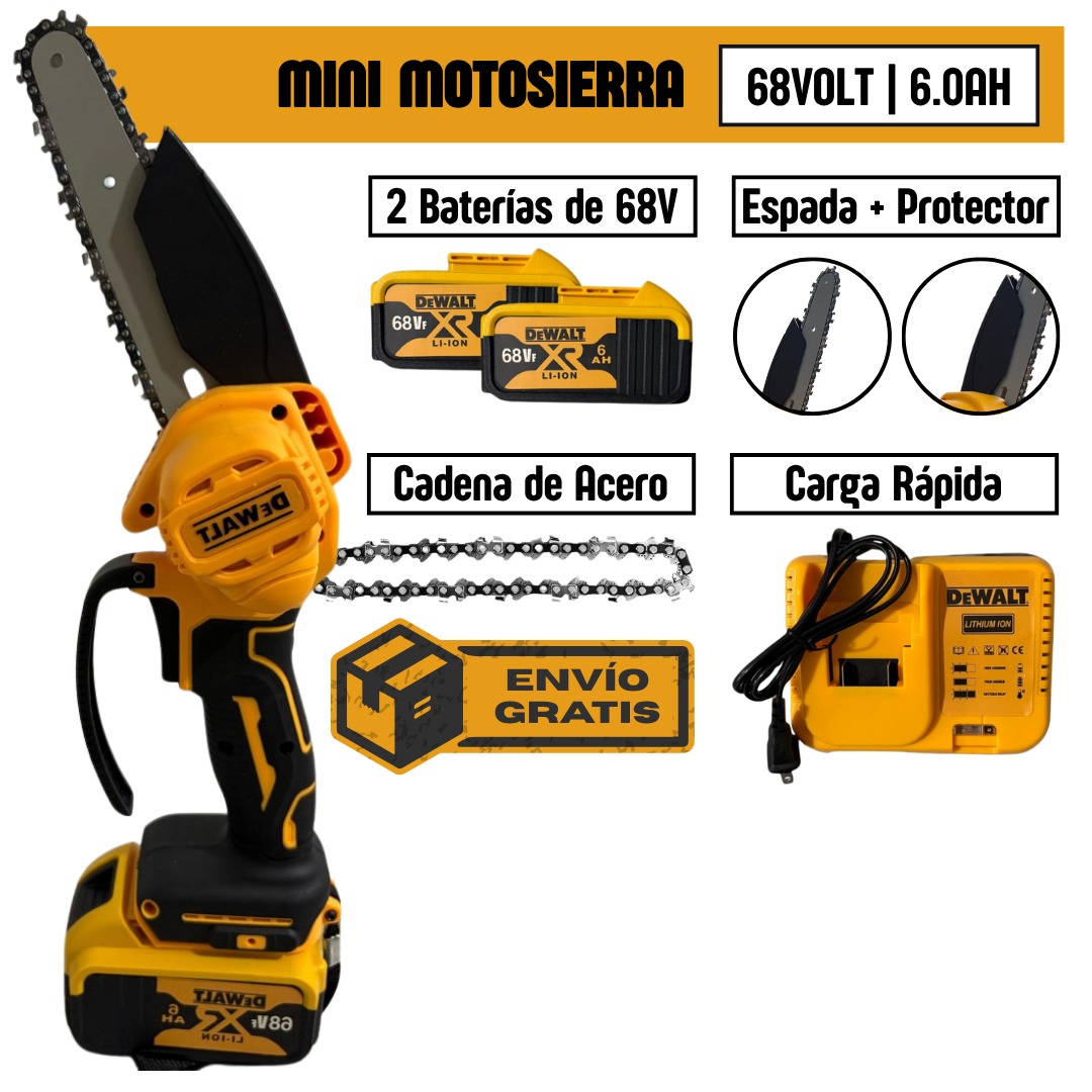 cuenta con dos baterias de 68 voltios , cargador carga rapida , espada , cadena y maletin viajero