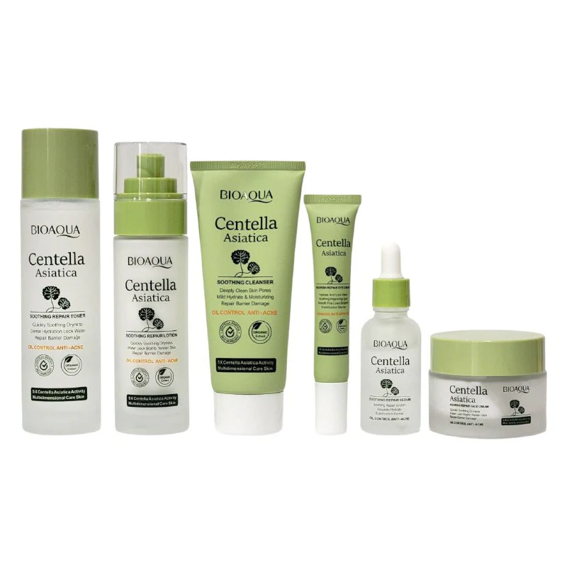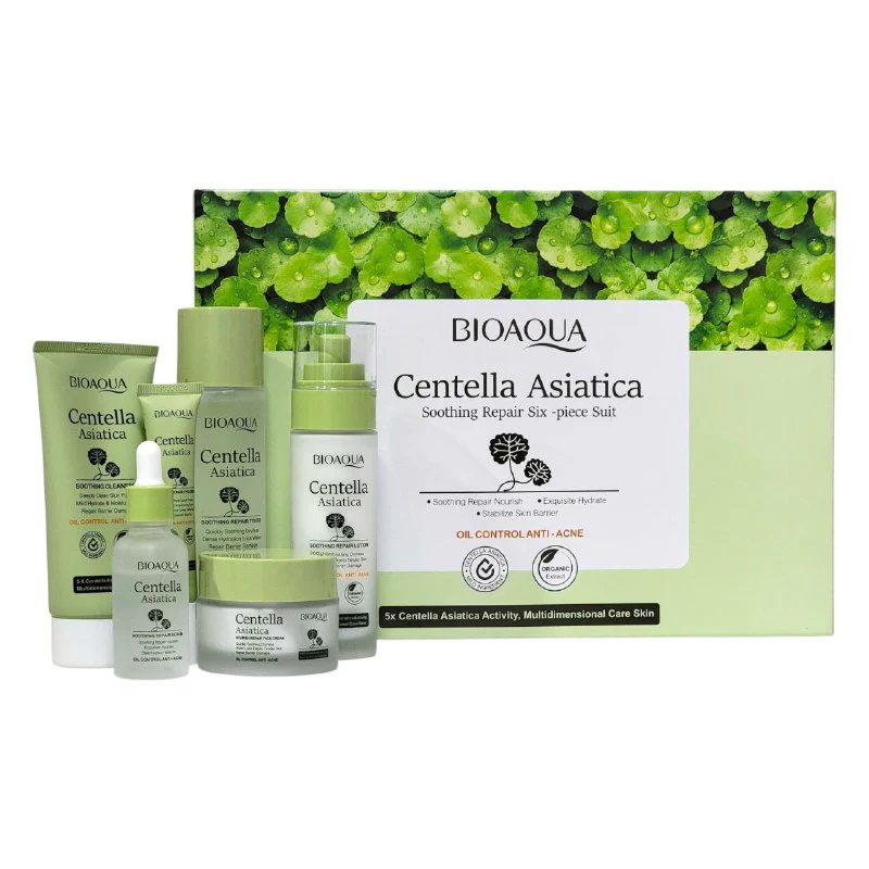 El Kit Centella Asiática Bioaqua es un tratamiento facial completo que ayuda a controlar el acné, reducir grasa, calmar irritaciones y reparar la barrera cutánea. La Centella Asiática aporta beneficios antiinflamatorios, regeneradores y calmantes, ideal para piel grasa, mixta o sensible. 💚