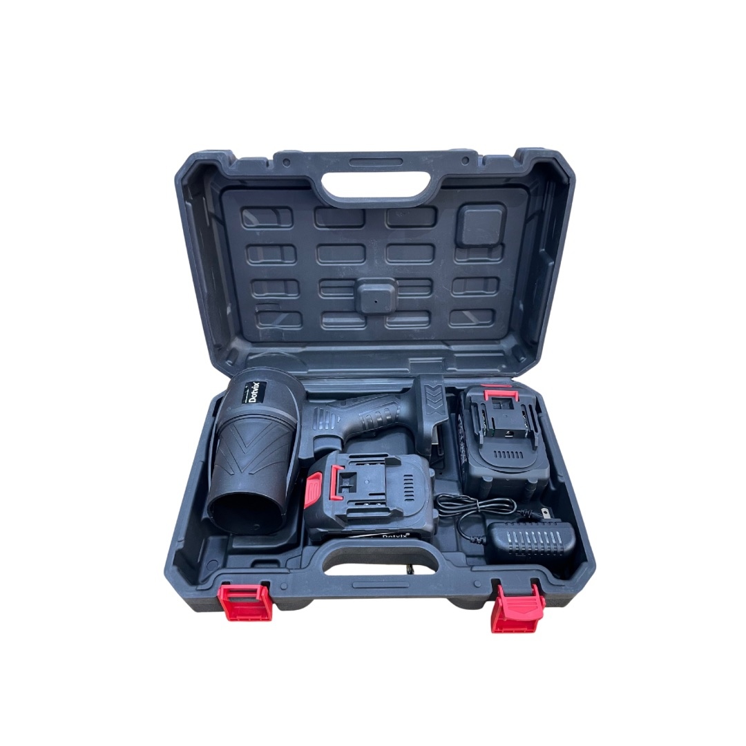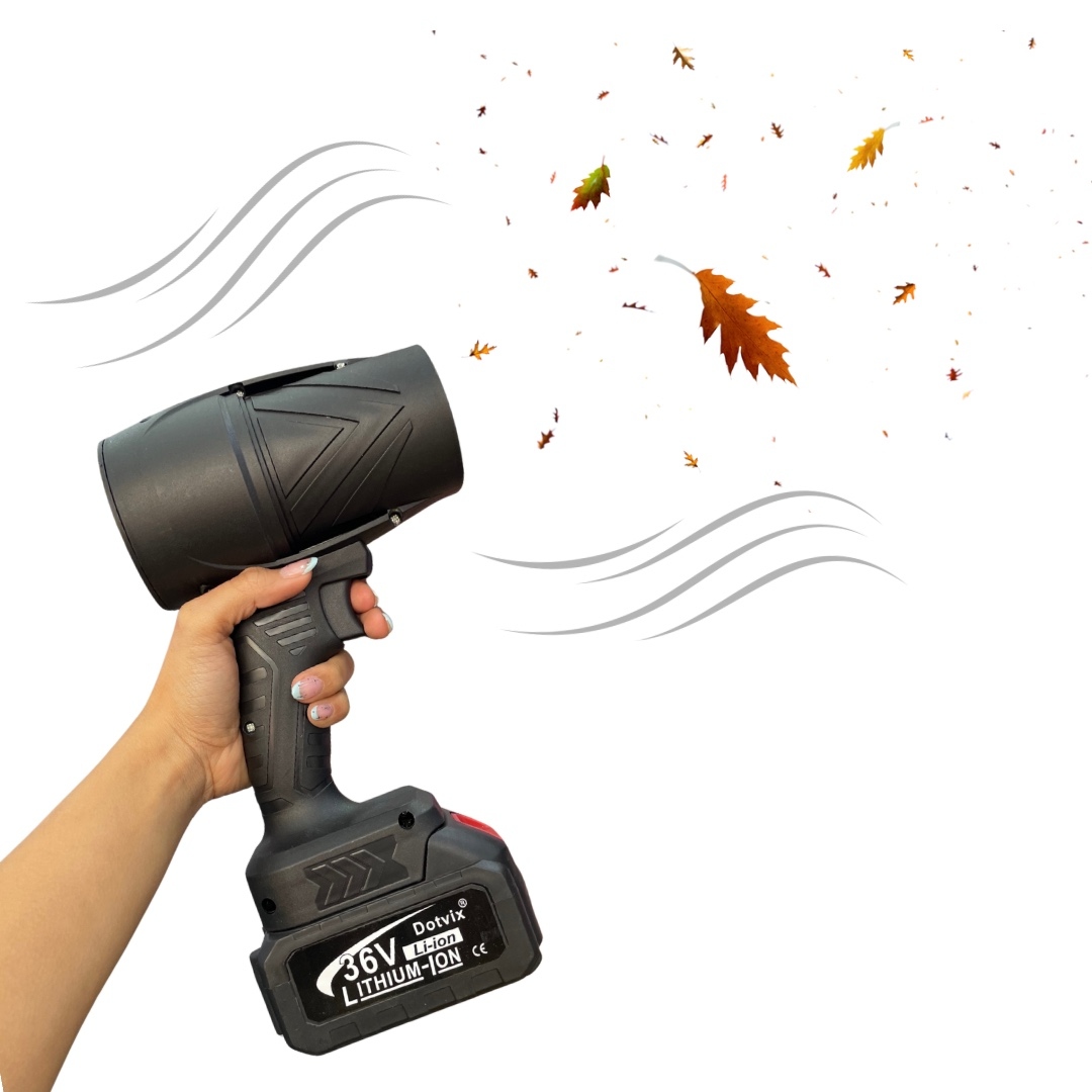 soplador de aire eléctrico portátil Dotvix 36V Lithium-Ion. Se trata de una herramienta inalámbrica y versátil, diseñada para tareas de limpieza como eliminar hojas y escombros de patios y jardines, o polvo de equipos electrónicos y vehículos.