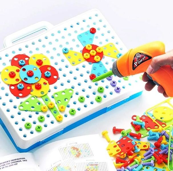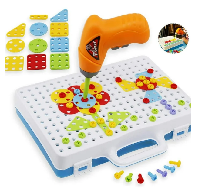 El Taladro Eléctrico de Juguete para Niños es un juego divertido y educativo que potencia la creatividad y la coordinación de los pequeños desde los 3 años. Incluye un set de herramientas con taladro funcional de juguete y piezas tipo mosaico para armar figuras en 3D, permitiendo construir, ensamblar y explorar mientras desarrollan habilidades motoras y de imaginación. Su diseño seguro, colorido y resistente lo convierte en el juguete ideal para niños y niñas de 3 a 6 años que disfrutan crear y aprender mientras juegan. Perfecto como herramienta didáctica y como regalo que garantiza horas de diversión creativa.