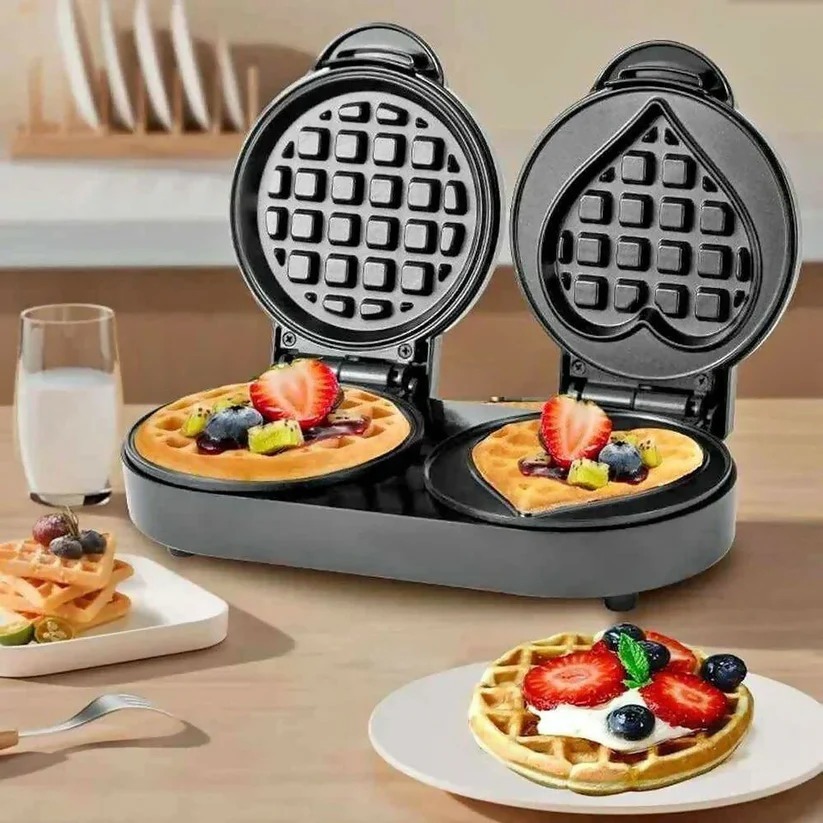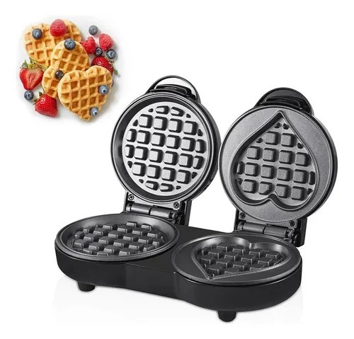 🍽️ Dos moldes amplios para hacer waffles simultáneamente en forma redonda y corazon