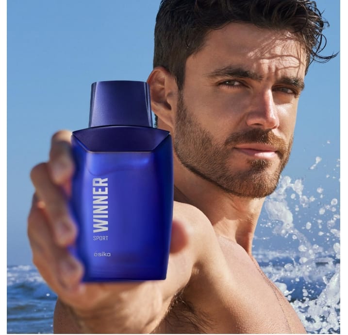 Winner Sport de Ésika es una fragancia herbal aromática de alta concentración y larga duración, diseñada para hombres activos y enérgicos. Su aroma combina notas cítricas, verdes y amaderadas, con un énfasis en salvia sclarea y cedro, para transmitir una sensación de fuerza y dinamismo.